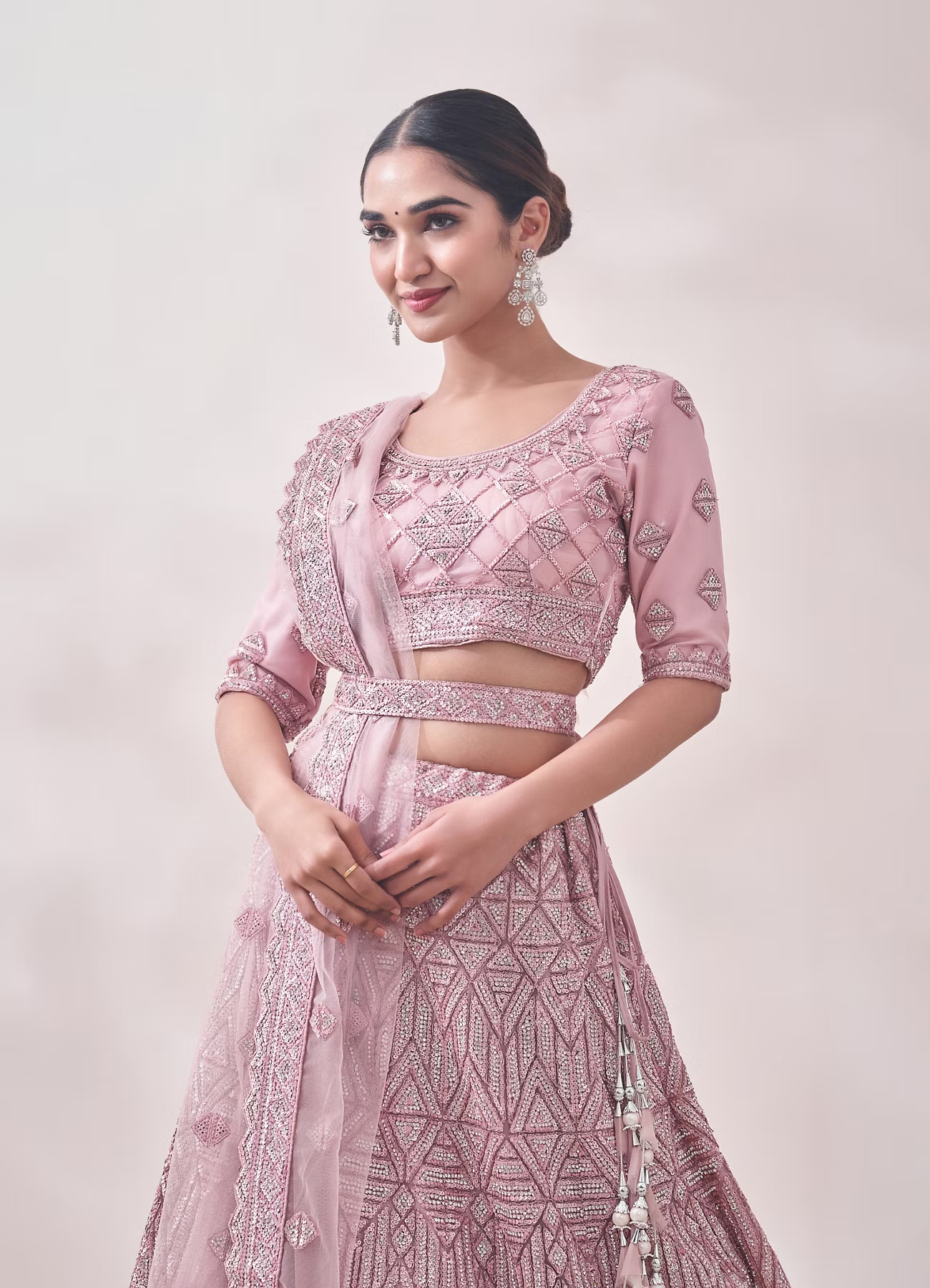 Be the first to review “Fairy Tale Pink Triangular Patterned Bridal Lehenga” Cancel reply
