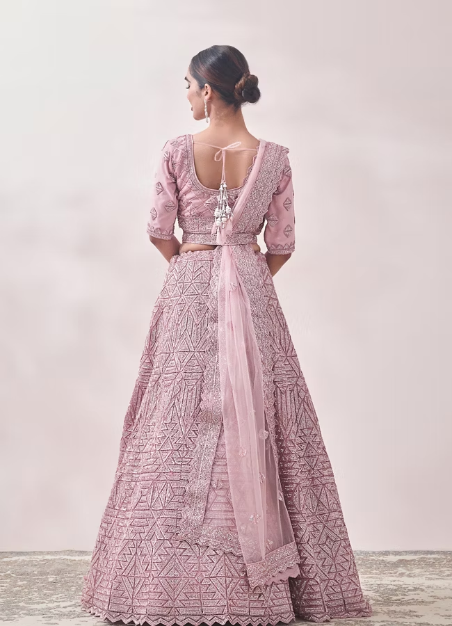 Fairy Tale Pink Triangular Patterned Bridal Lehenga
