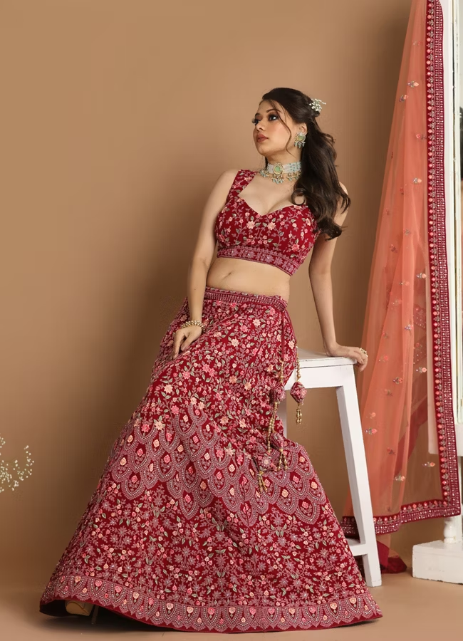 Be the first to review “Georgette Wine Red Lehenga” Cancel reply