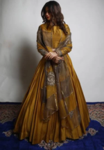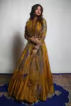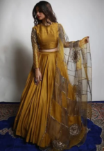 Be the first to review “Gold Lehenga And Blouse Dupion Silk Embroidered Zari Round Neck Set” Cancel reply