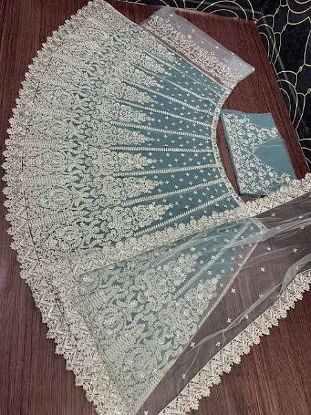 Be the first to review “Graceful Grey Color Net Wedding Wear Chine Stitched Work Lehenga Choli For Women” Cancel reply