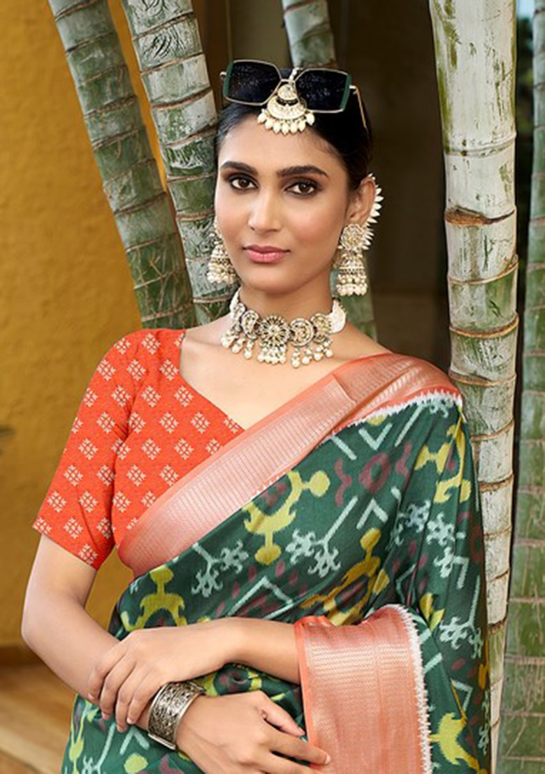 Emerald Elegance Organza Saree