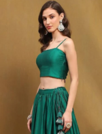 Be the first to review “Green Silk Chanderi Festive Flared Lehenga Set” Cancel reply