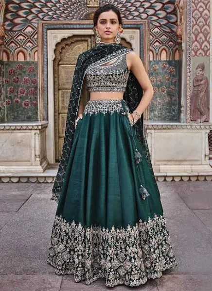 Be the first to review “Green Zari Embroidery Silk Wedding Lehenga Choli With Dupatta” Cancel reply