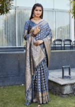 Be the first to review “Grey Woven Jacquard Satin Silk Saree Set” Cancel reply