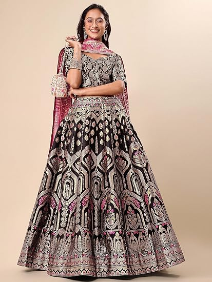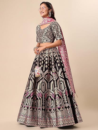 Indian Wedding Style Banarasi Lehenga Choli For Women Party Wear with Un-Stitched Blouse Dress