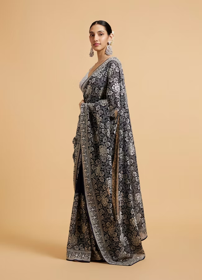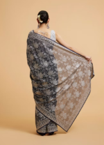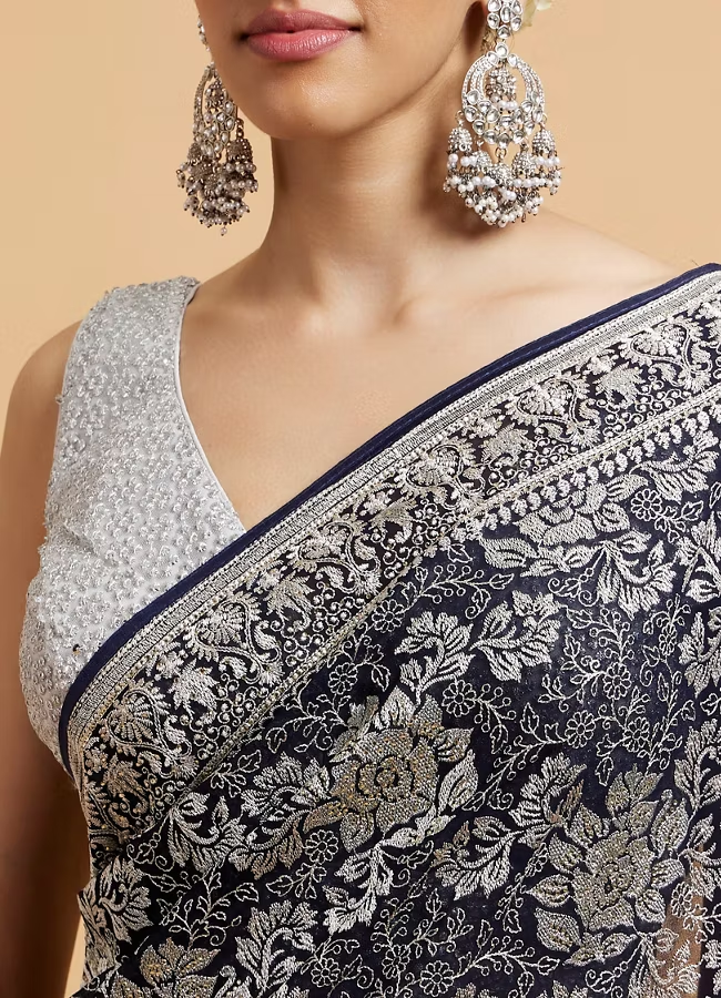 Indigo Blue Floral Patterned Saree with Sequin Work