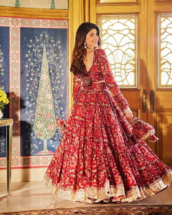 TRENDMALLS Women’s Satin Embroidery Lehenga Choli with Dupatta | Bridal Stylish Wedding Lehenga Choli for women