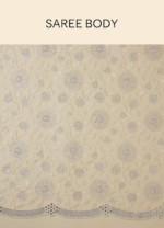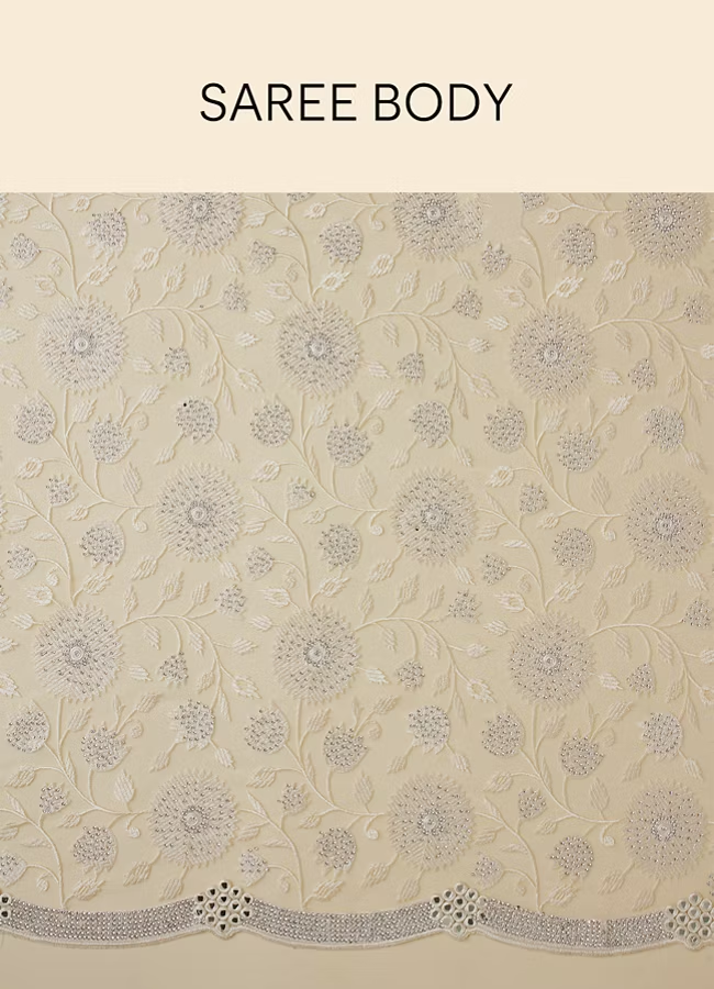 Ivory Cream Bel Buti Patterned Mirror and Stone Work Saree