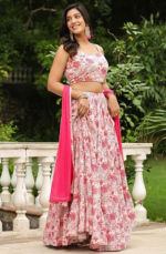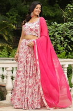 - Blouse Color : Cream | Lehenga Color : Cream | Dupatta Color : Pink