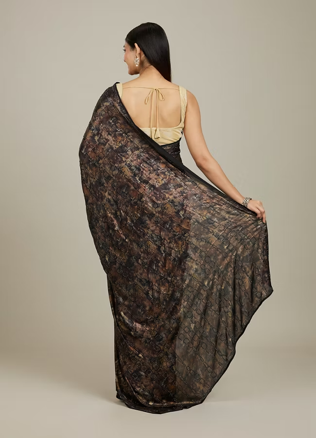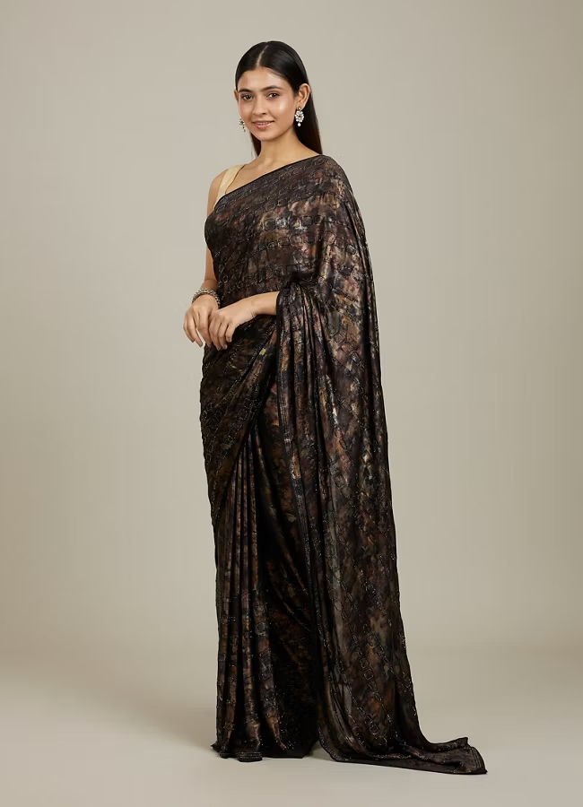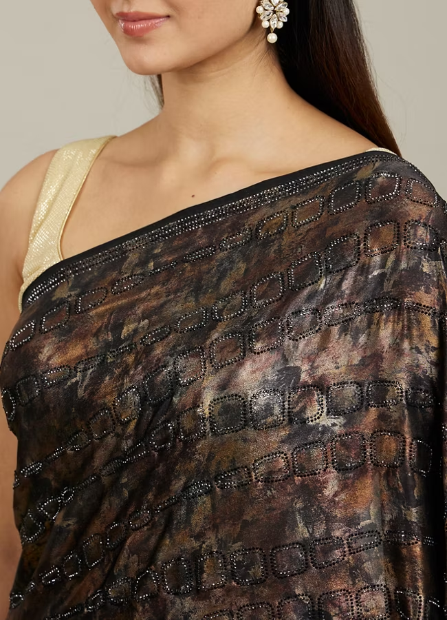 Kohl Black Jaal Patterned Stone Embellished Saree