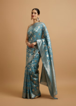 Cream Zarkon Embroidered Banarasi Silk Saree Set