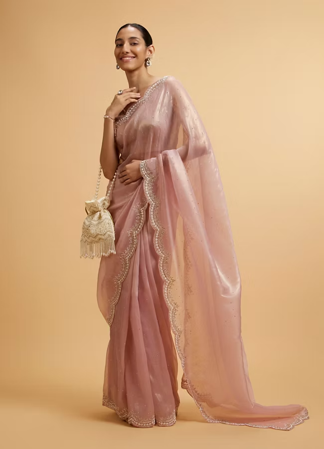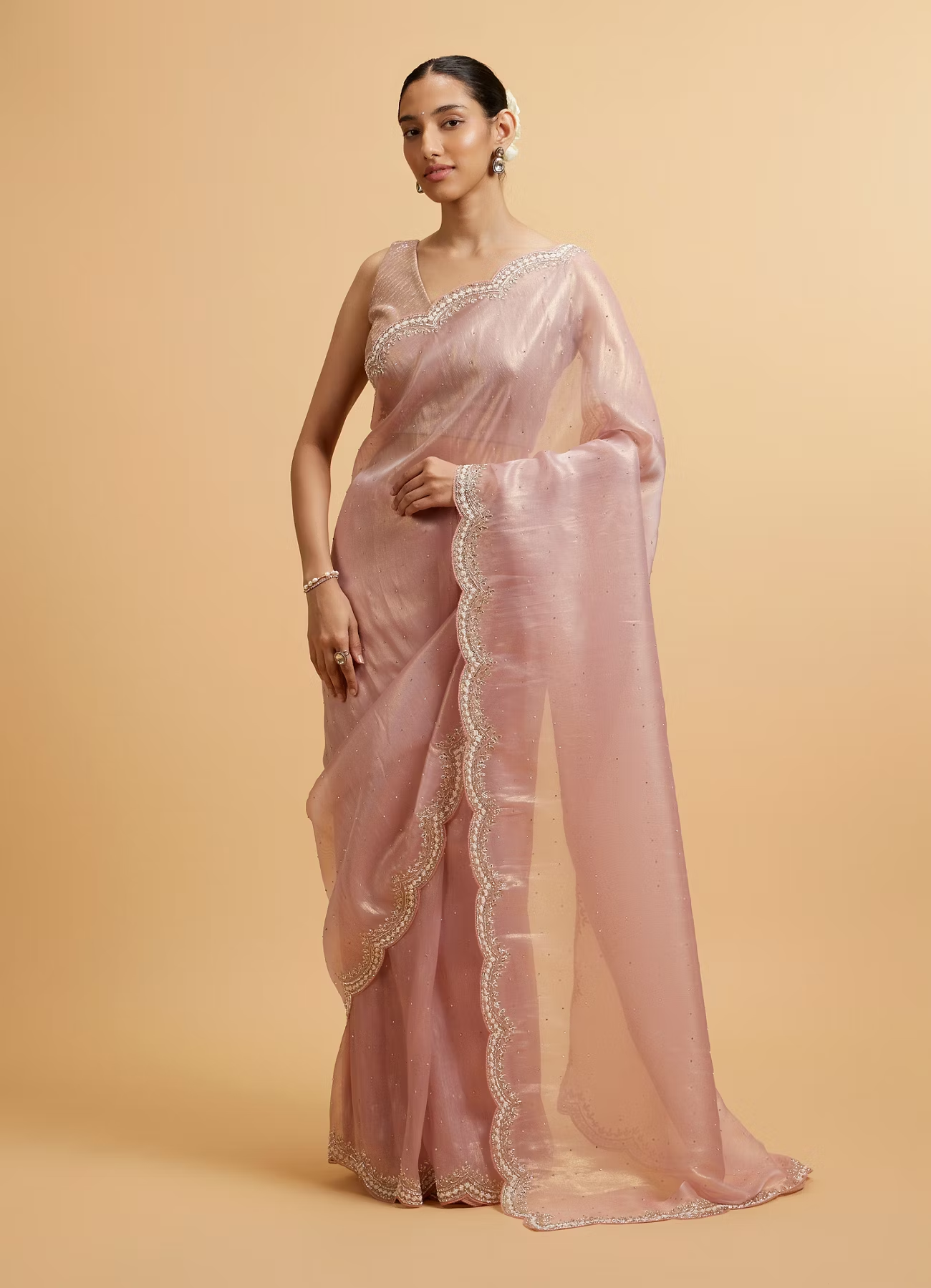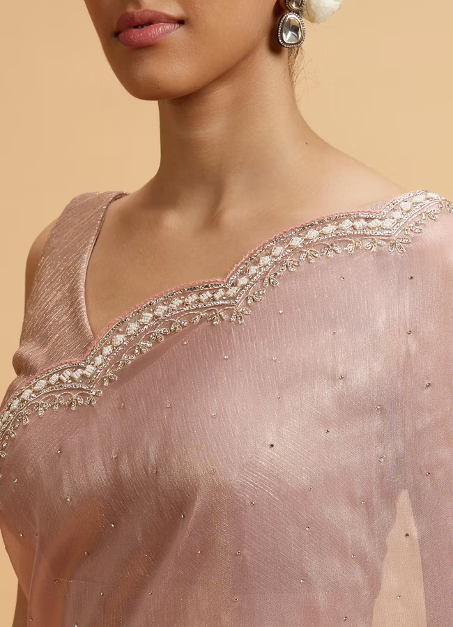 Be the first to review “Light Pink Pearl and Rhinestone Embellished Saree”
