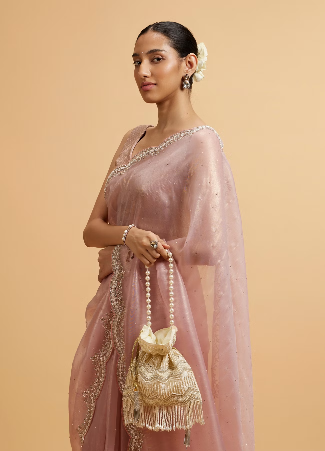 • DescriptionRadiate grace with our Light Pink Pearl and Rhinestone Embellished Saree. This exquisite piece is adorned with delicate pearls and shimmering rhinestones, creating a stunning blend of elegance and sparkle. The soft pink hue adds a touch of femininity, making it perfect for weddings and festive occasions. Pair this saree with a matching or contrasting blouse and delicate pearl jewelry to enhance its sophisticated charm.