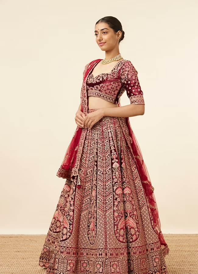 Maroon Embellished Bridal Lehenga