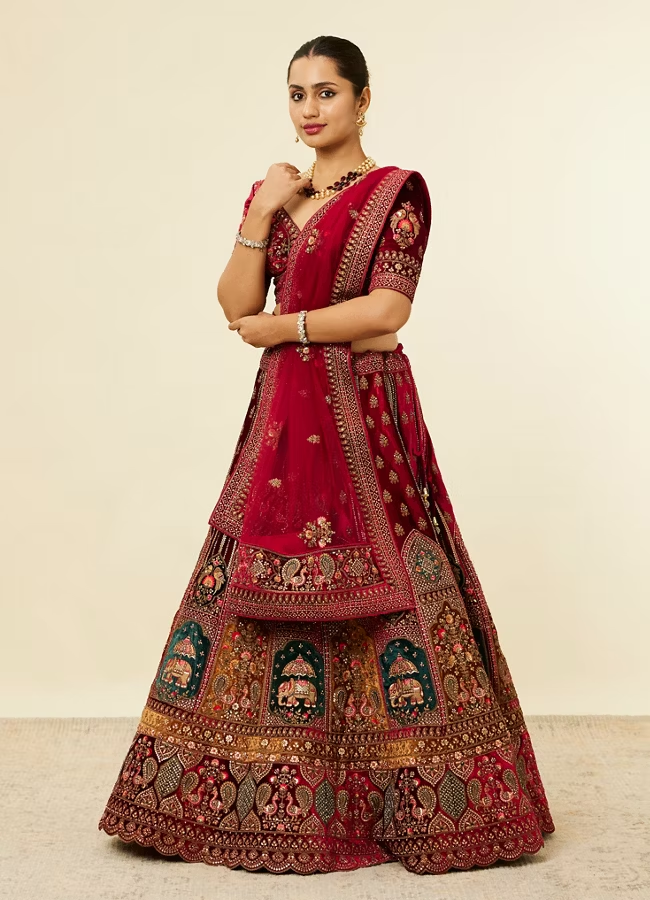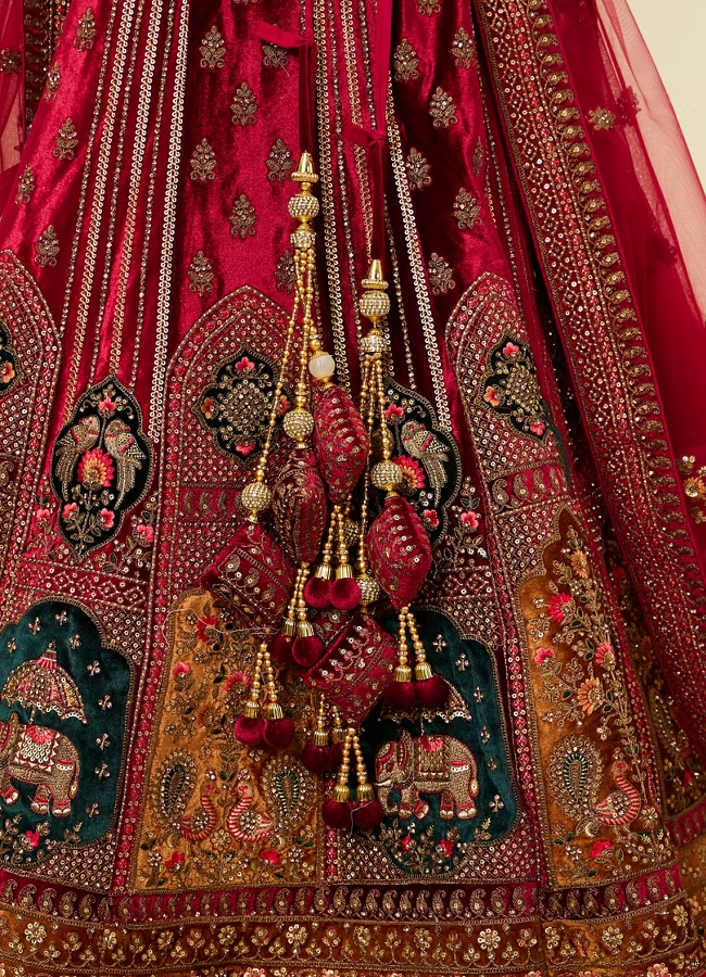 Maroon Floral Aari Embroidered Bridal Lehenga