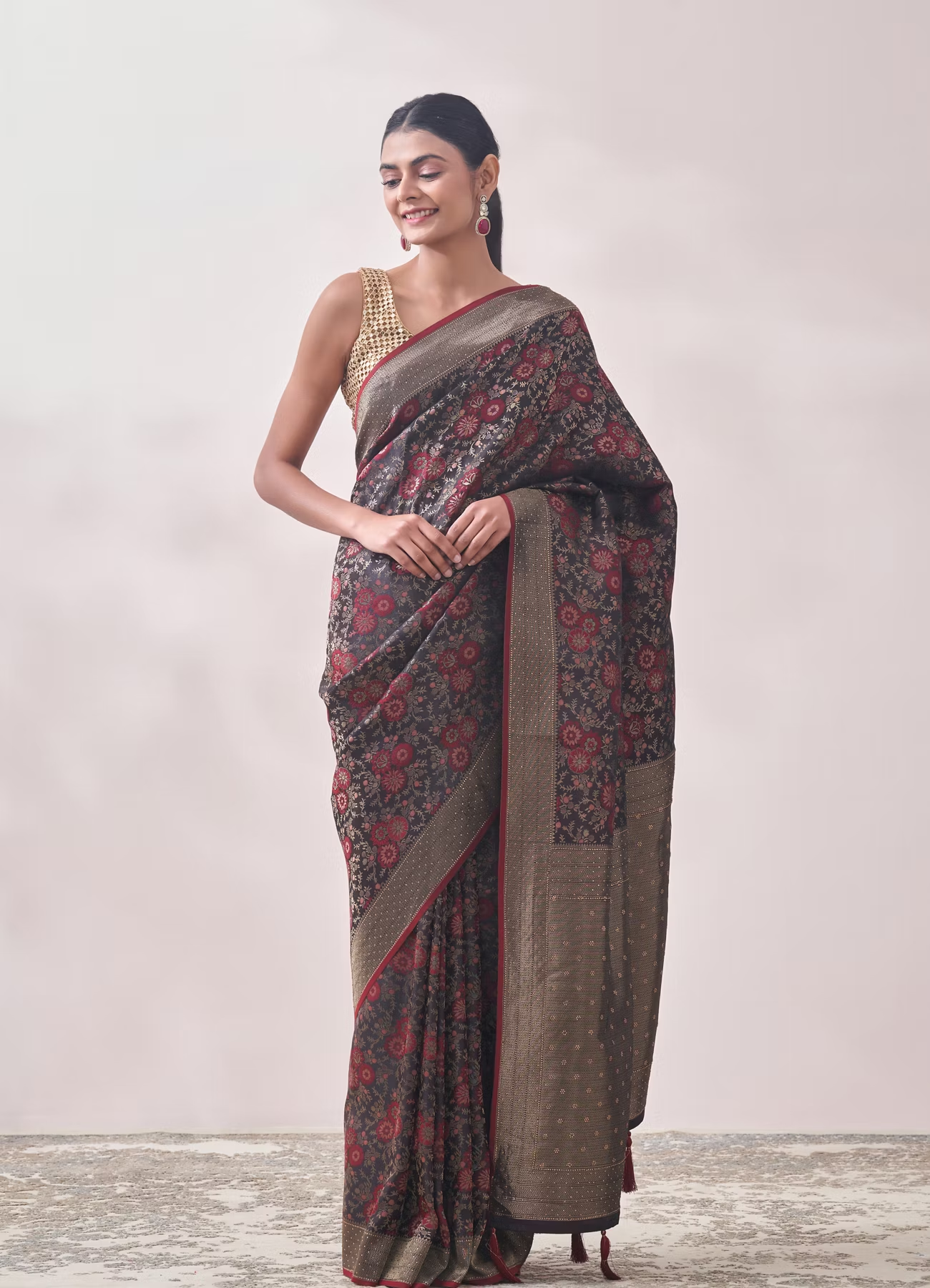 Maroon Floral Print Saree
