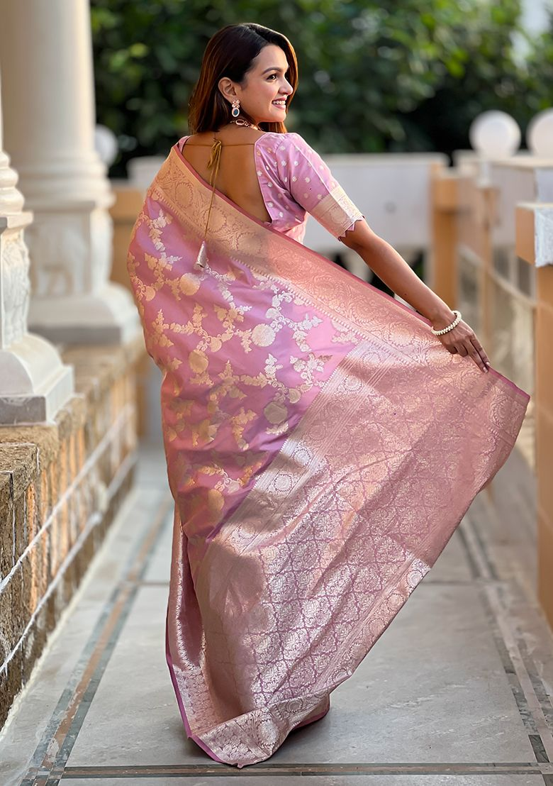 Mauve Zari Woven Silk Saree Set