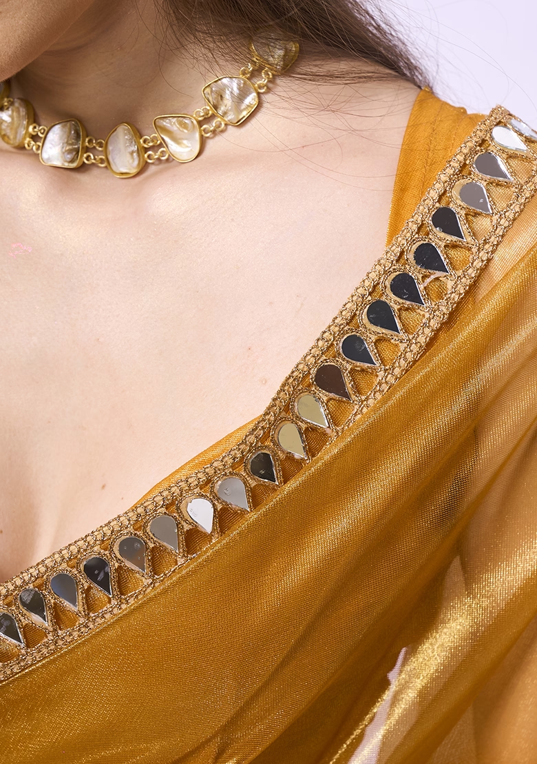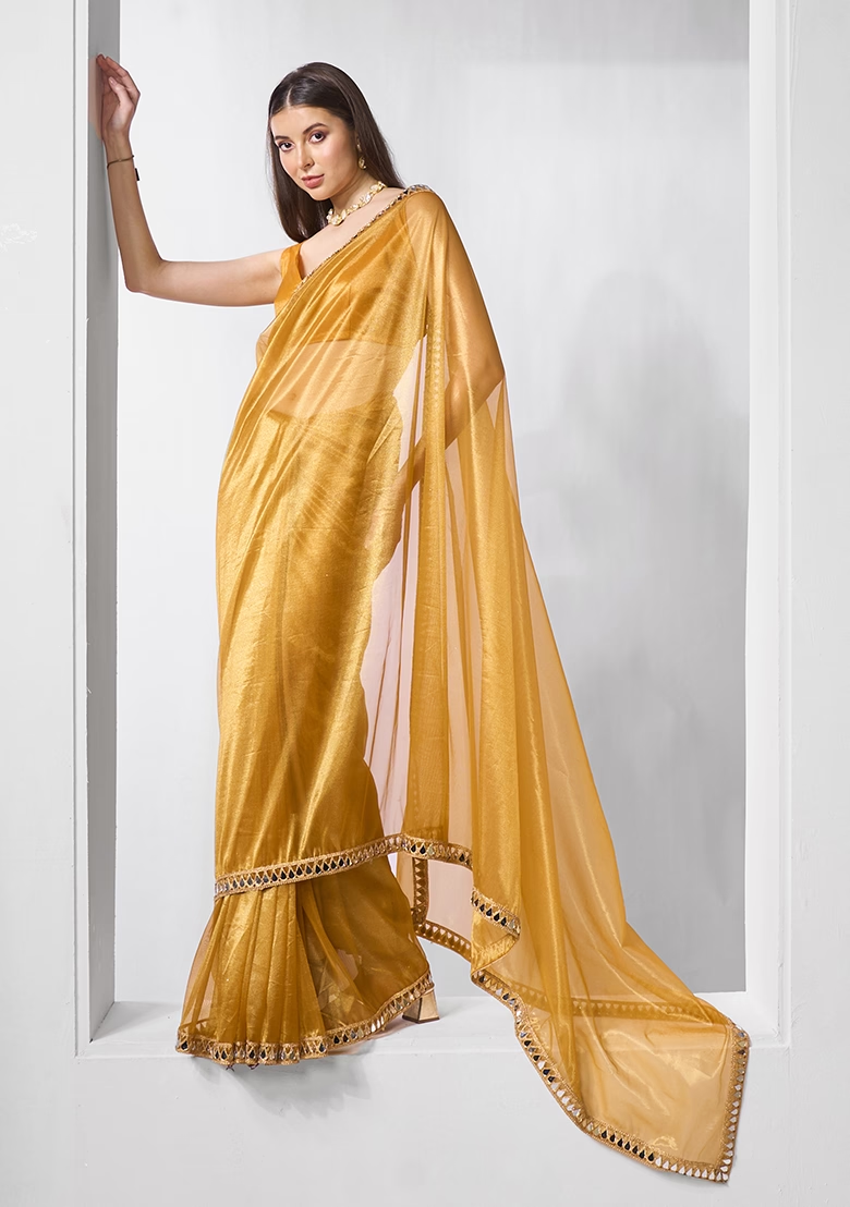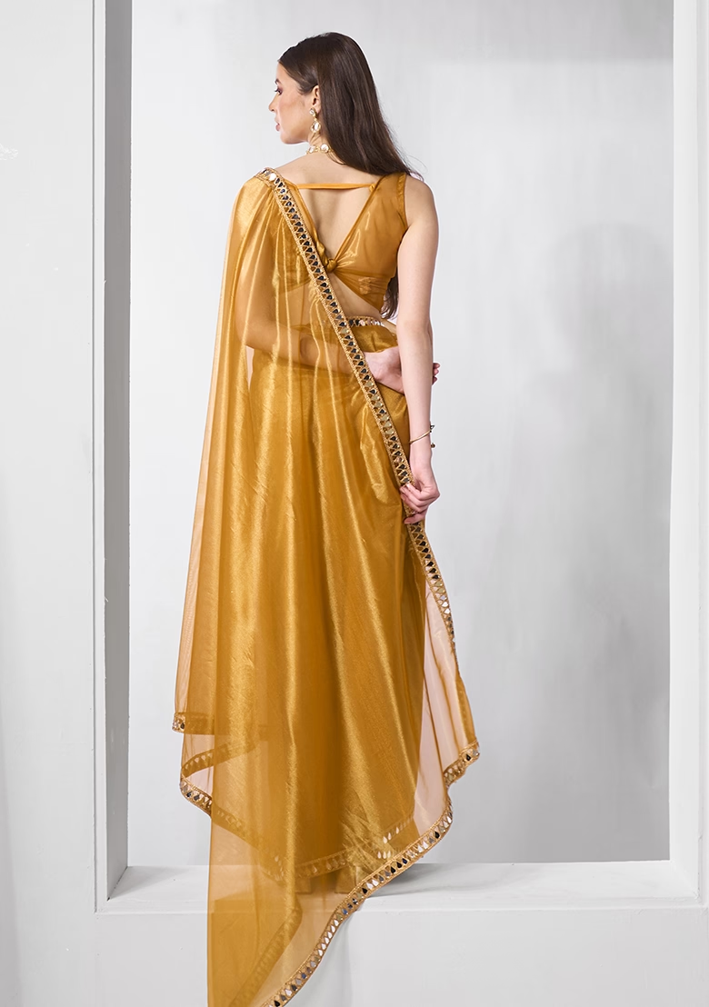 Metallic Gold Embellished Organza Saree Set