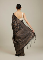 Midnight Black Lotus Leaf Patterned Saree