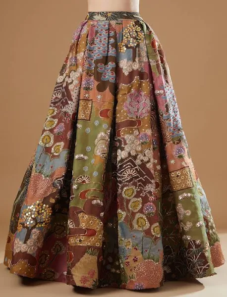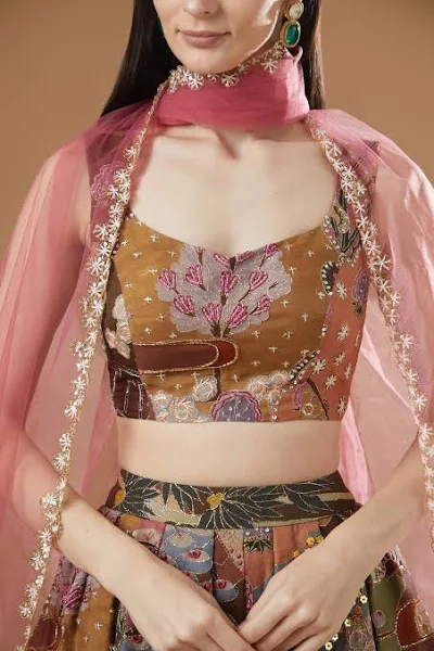 Multi-Colored Organza Printed & Embellished Lehenga Set