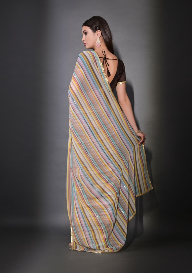 Be the first to review “Multicolor Sequin Embroidered Georgette Saree Set”