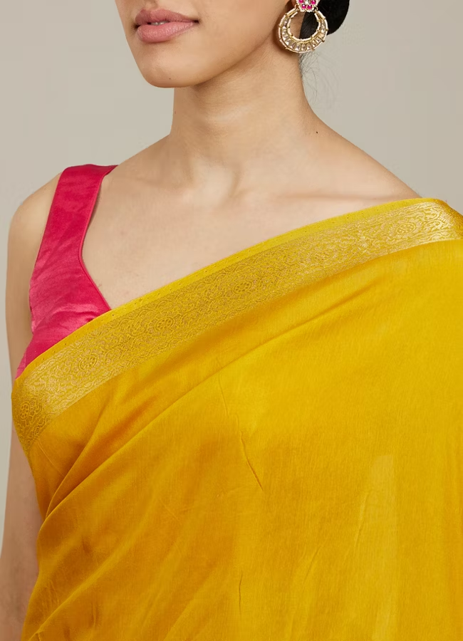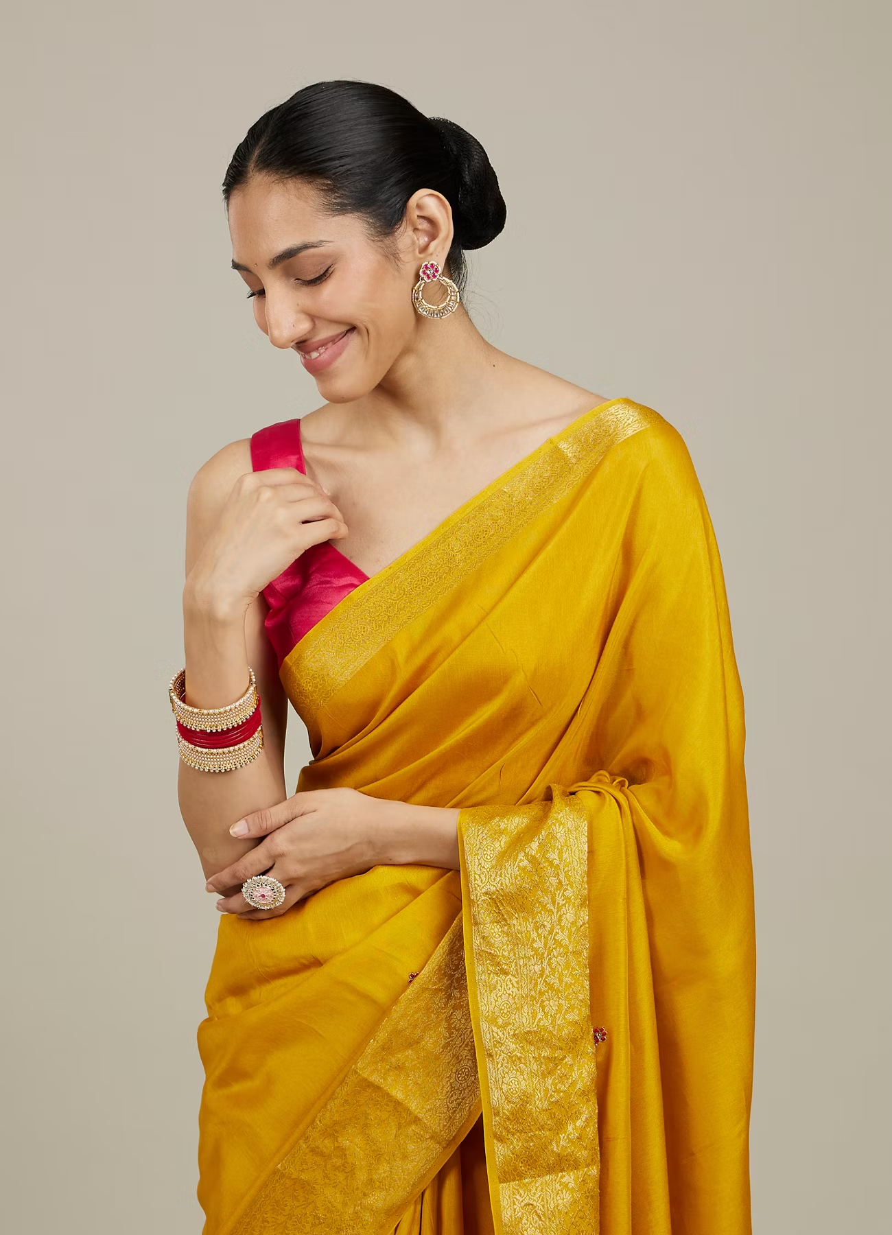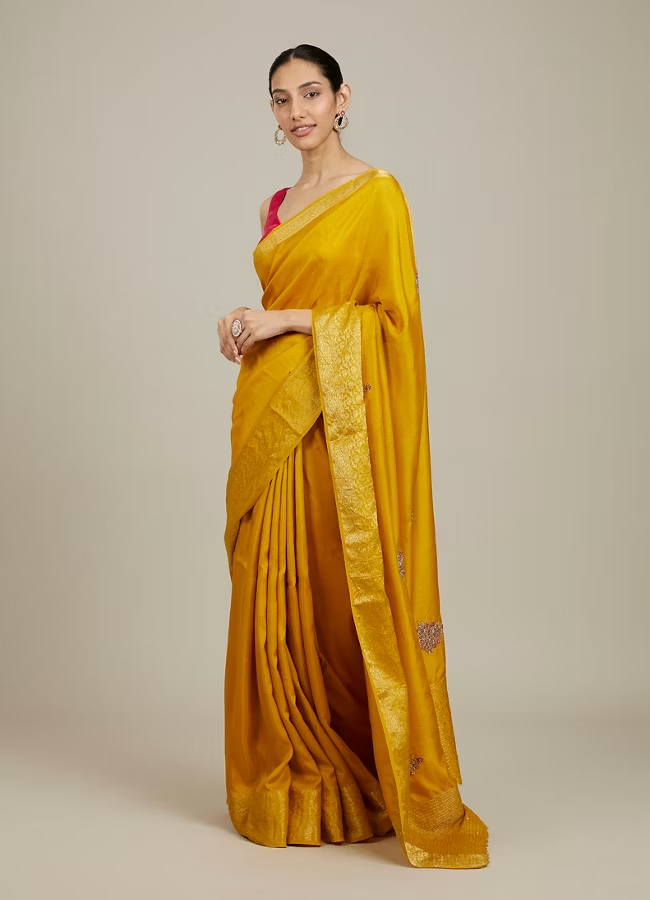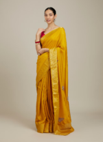 Mustard Yellow Buta Embroidered Saree with Scalloped Borders
