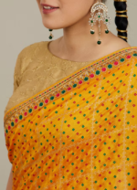 Be the first to review “Mustard Yellow Linear Patterned Bandhani Saree with Rhinestone Work” Cancel reply