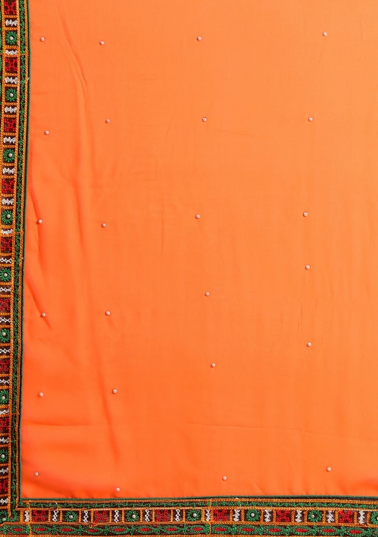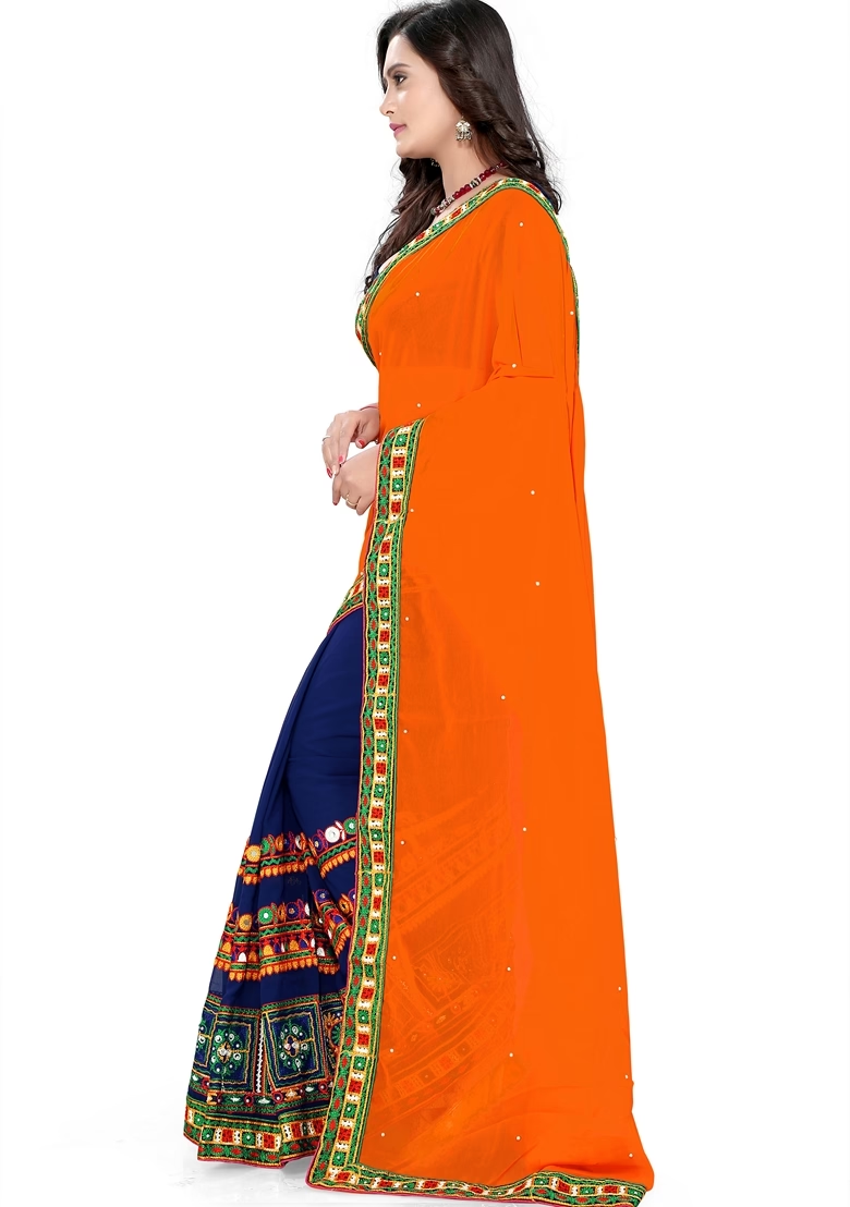 Navy Blue And Orange Embroidered Georgette Saree Set