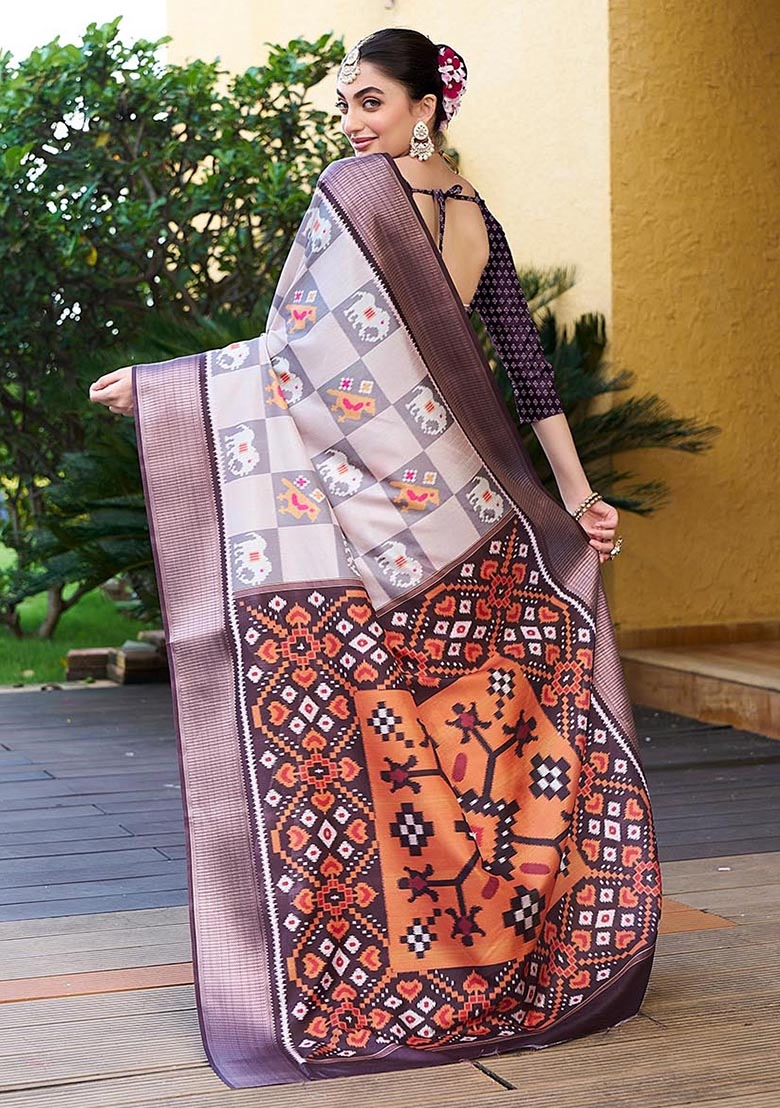 Off White Zari Woven Crepe Saree Set