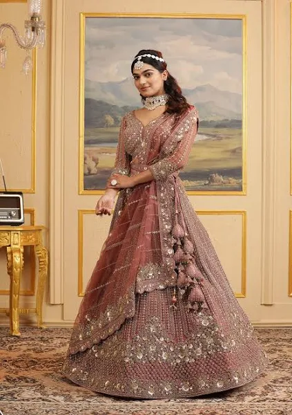 Be the first to review “Onion Pink Zariwork Net Readymade Lehenga” Cancel reply