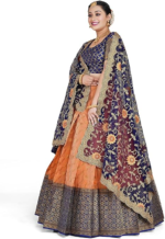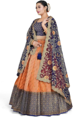 Be the first to review “Orange Banarasi silk Zari Party Wear Half Saree” Cancel reply