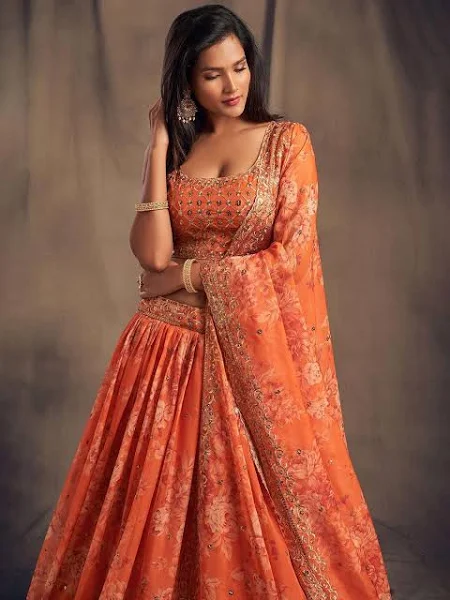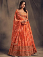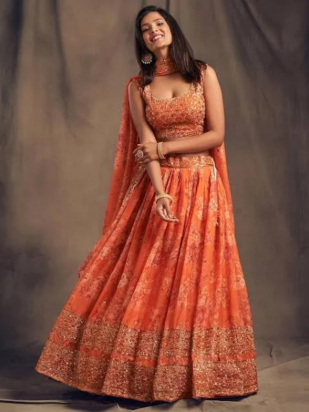 Be the first to review “Orange & Gold-Toned Embroidered Sequinned Shibori Semi-Stitched Lehenga & Unstitched Blouse” Cancel reply