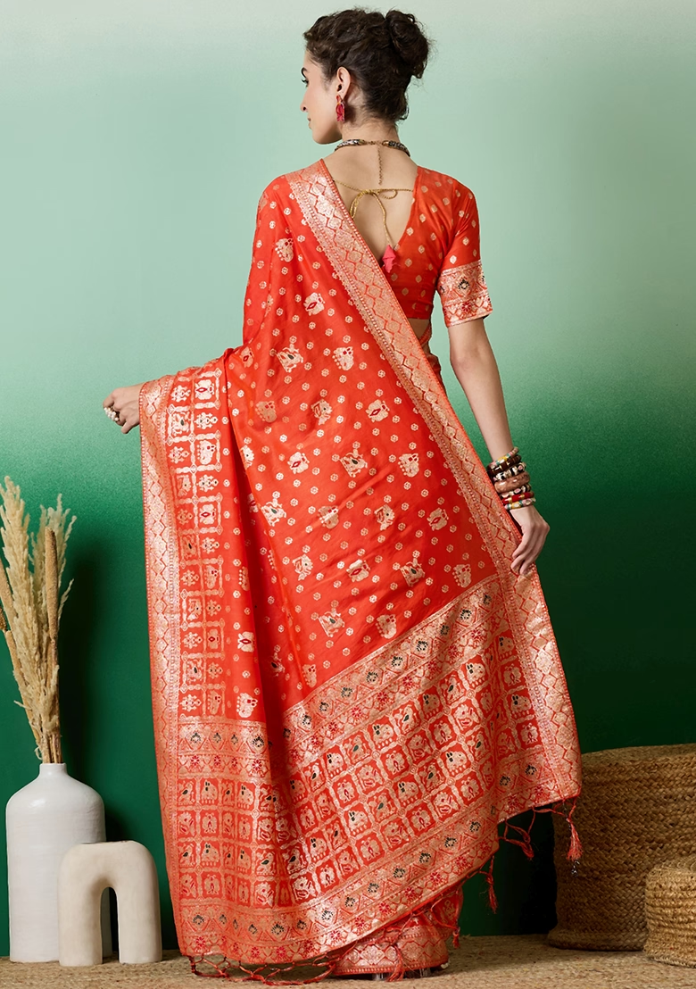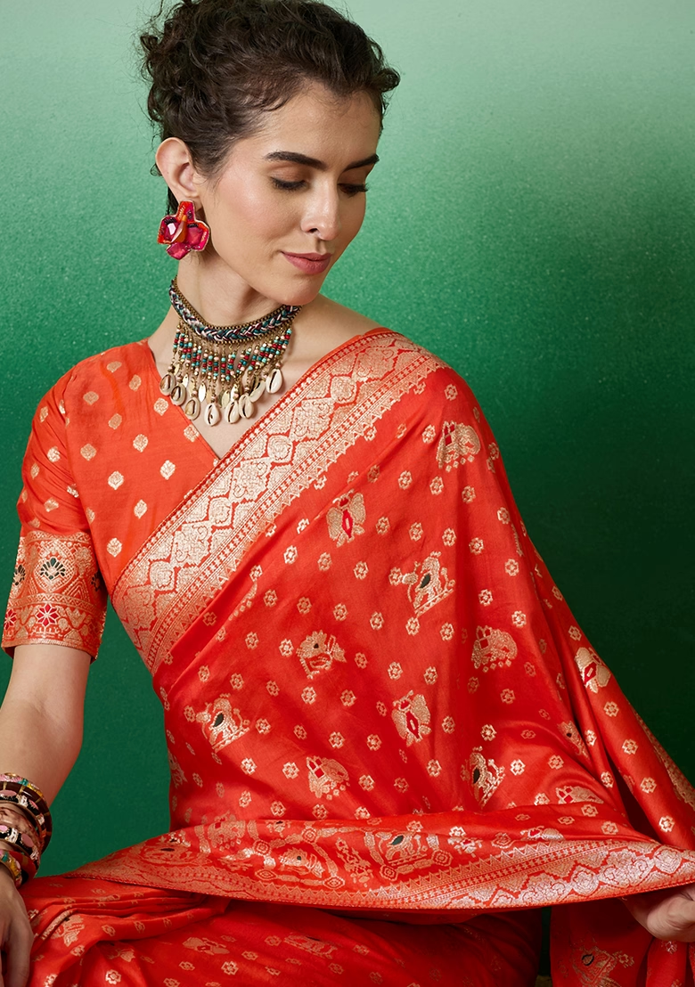 Orange Zari Woven Staple Cotton Saree Set – XSR22807