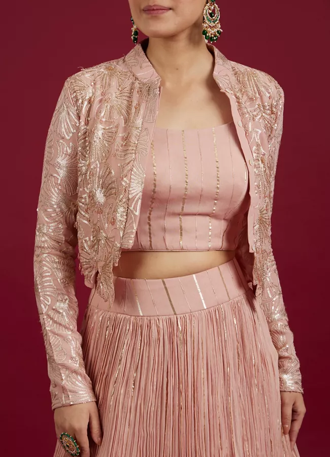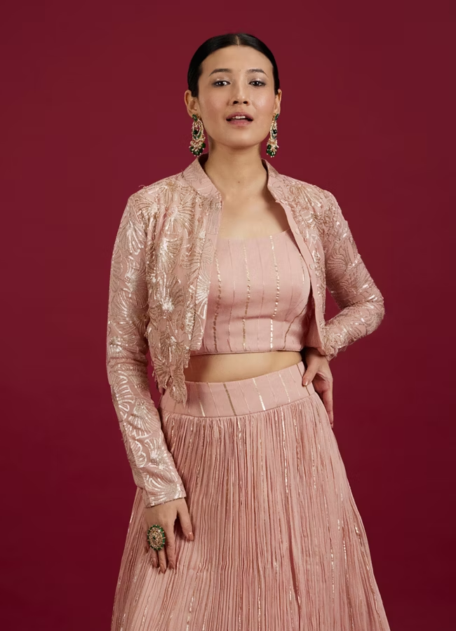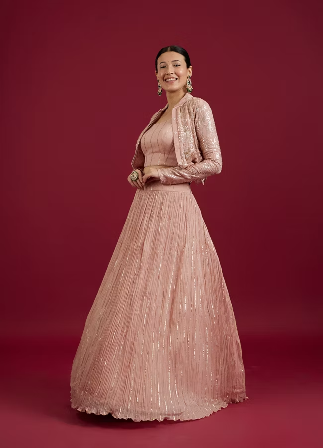 Be the first to review “Peach Radiance Georgette Lehenga” Cancel reply