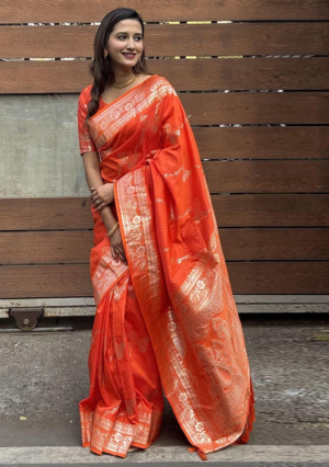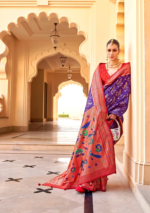 Be the first to review “Pink And Navy Blue Zari Woven Silk Saree Set” Cancel reply