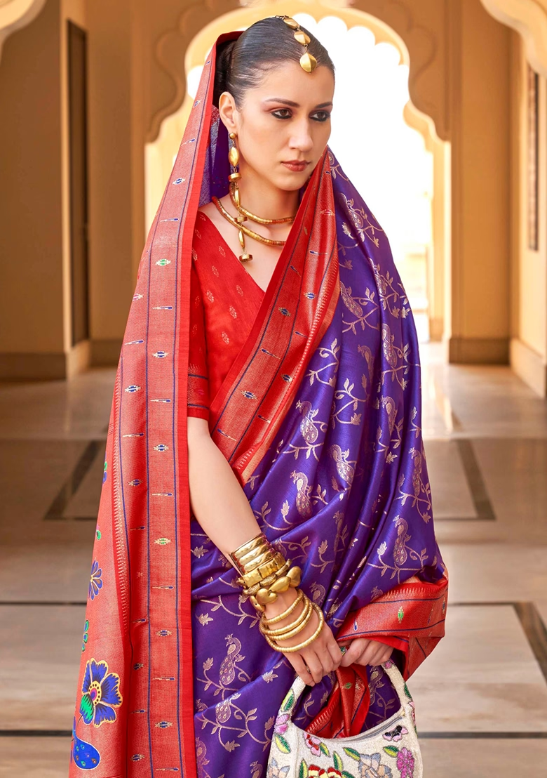 Pink And Navy Blue Zari Woven Silk Saree Set