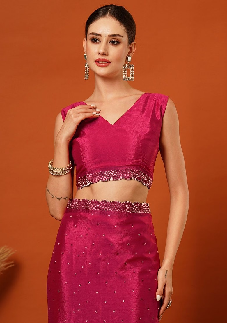 Pink Embellished Silk Saree Set – XSR30996