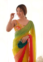 Emerald Elegance Organza Saree