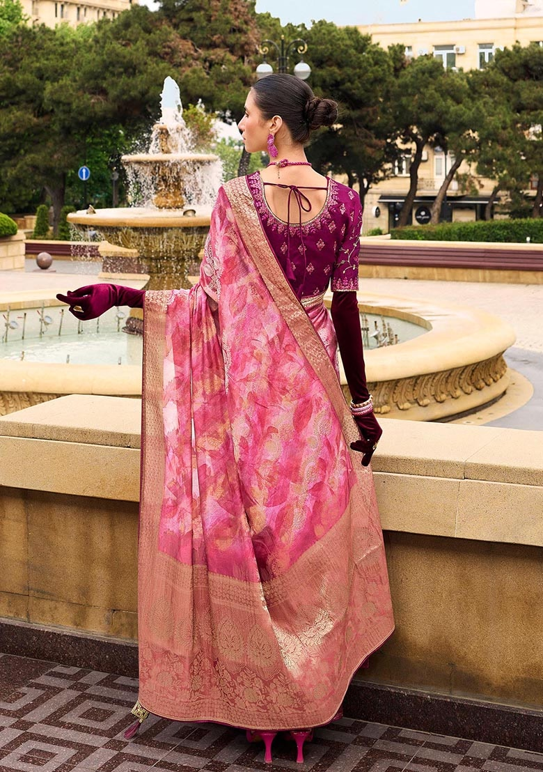 Pink Zari Woven Jacquard Silk Saree Set – XSR24116