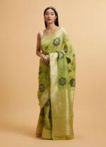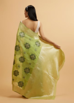 Pista Green Floral Motifs in Zari Work Saree