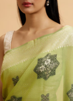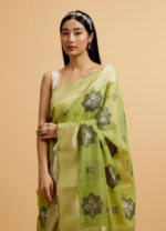 Be the first to review “Pista Green Floral Motifs in Zari Work Saree”