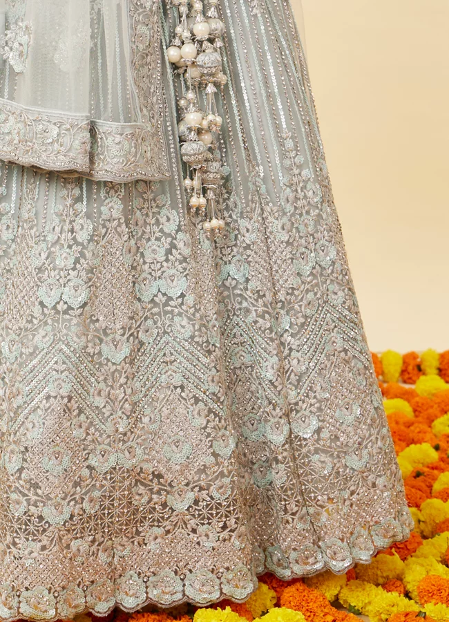 Powder Blue Rhinestone and Sitara Embroidered Bridal Lehenga