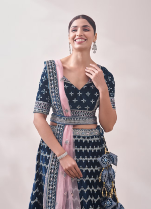Teal Blue Embroidered Bridal Lehenga