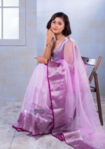 Be the first to review “Purple Machine Embroidered Nylon Organza Saree Set” Cancel reply