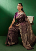 Be the first to review “Purple Woven Jaal Work Banarasi Silk Saree Set” Cancel reply