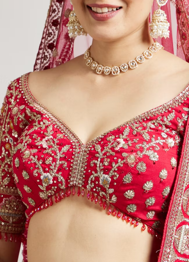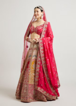- DescriptionDesigned for the new-age bride, this red and mustard bridal lehenga is a captivating blend of tradition and modern elegance. Crafted from premium art silk, the lehenga is beautifully adorned with intricate hand embroidery, dazzling mirror work, detailed thread artistry, and luxurious zari embellishments that add a touch of regal charm. The ensemble comes complete with a coordinating blouse, stylish latkan, a sleek belt, and a flowing dupatta to create a cohesive and graceful look. Perfect for brides who want to make a bold yet sophisticated statement on their big day, this lehenga is a celebration of timeless beauty with a contemporary flair.