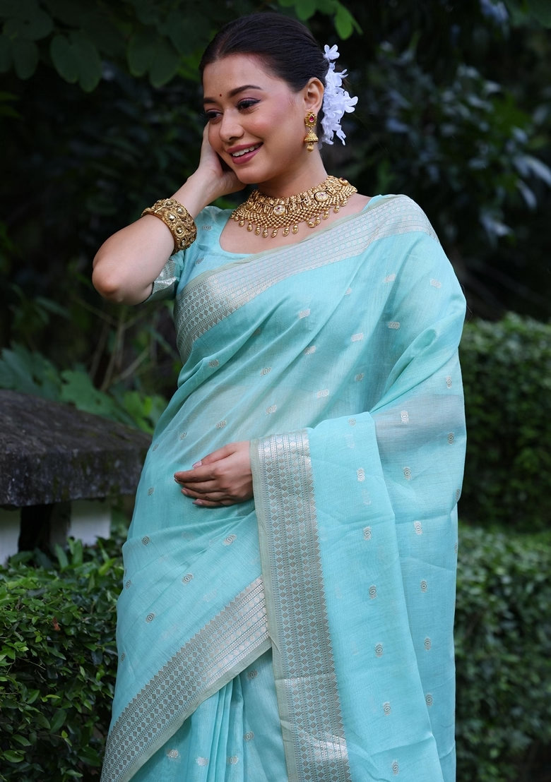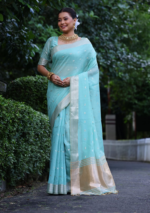 Be the first to review “Rama Blue Solid Tissue Silk Saree Set” Cancel reply