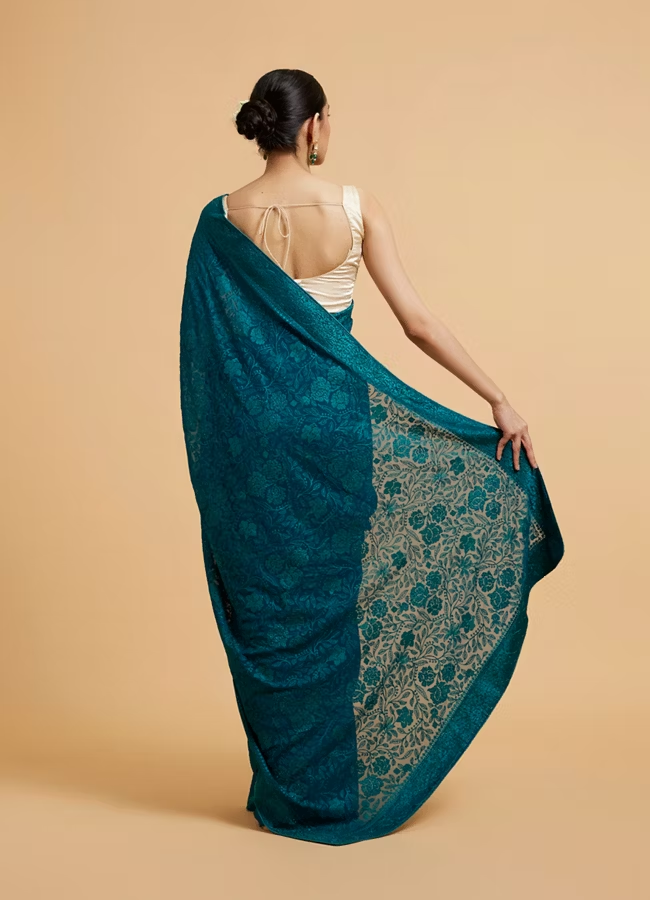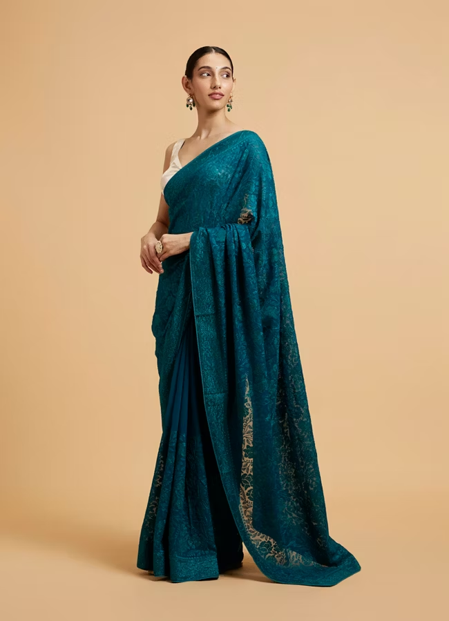 Emerald Elegance Organza Saree