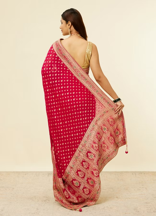 Rani Pink Buta Printed Sequinned Bridal Saree